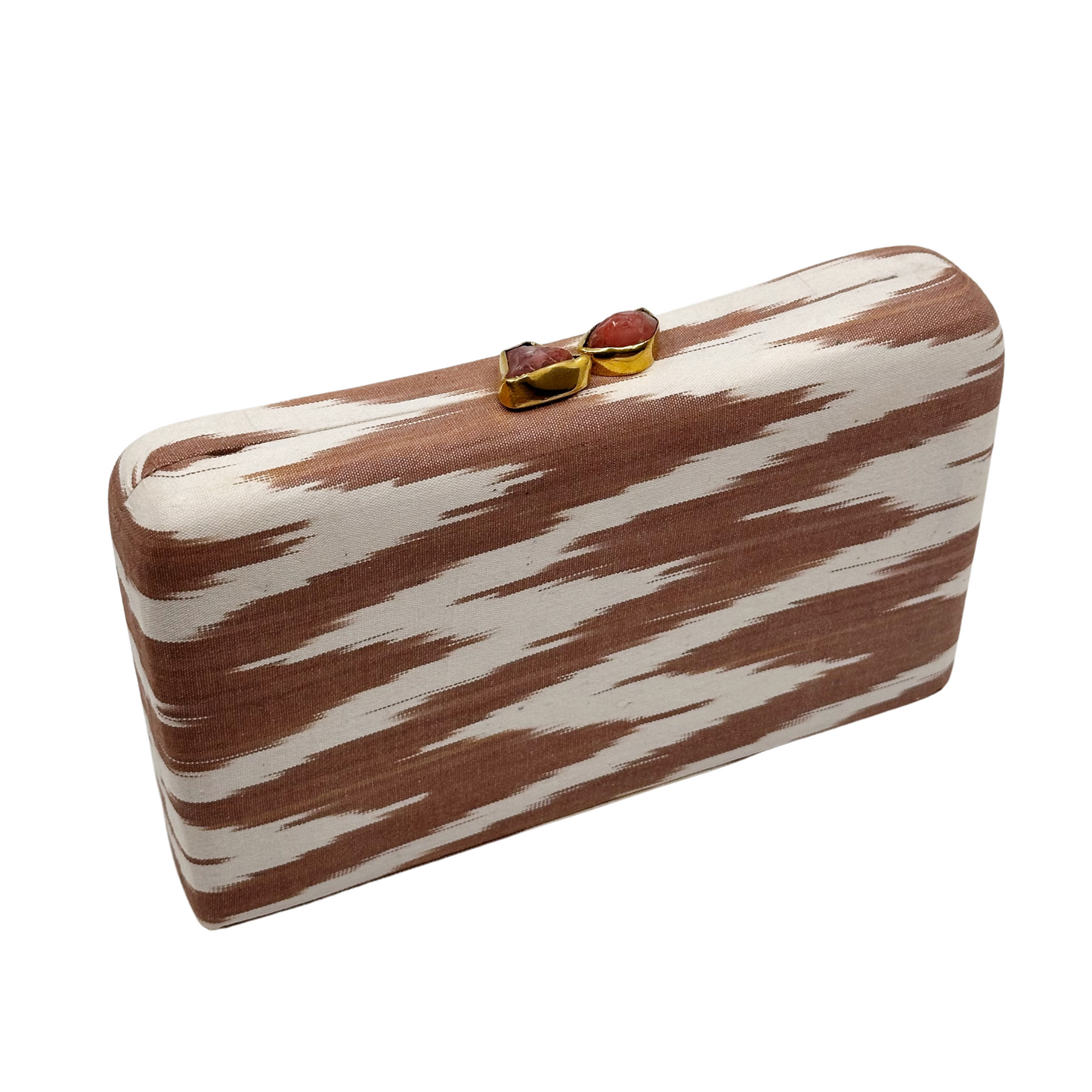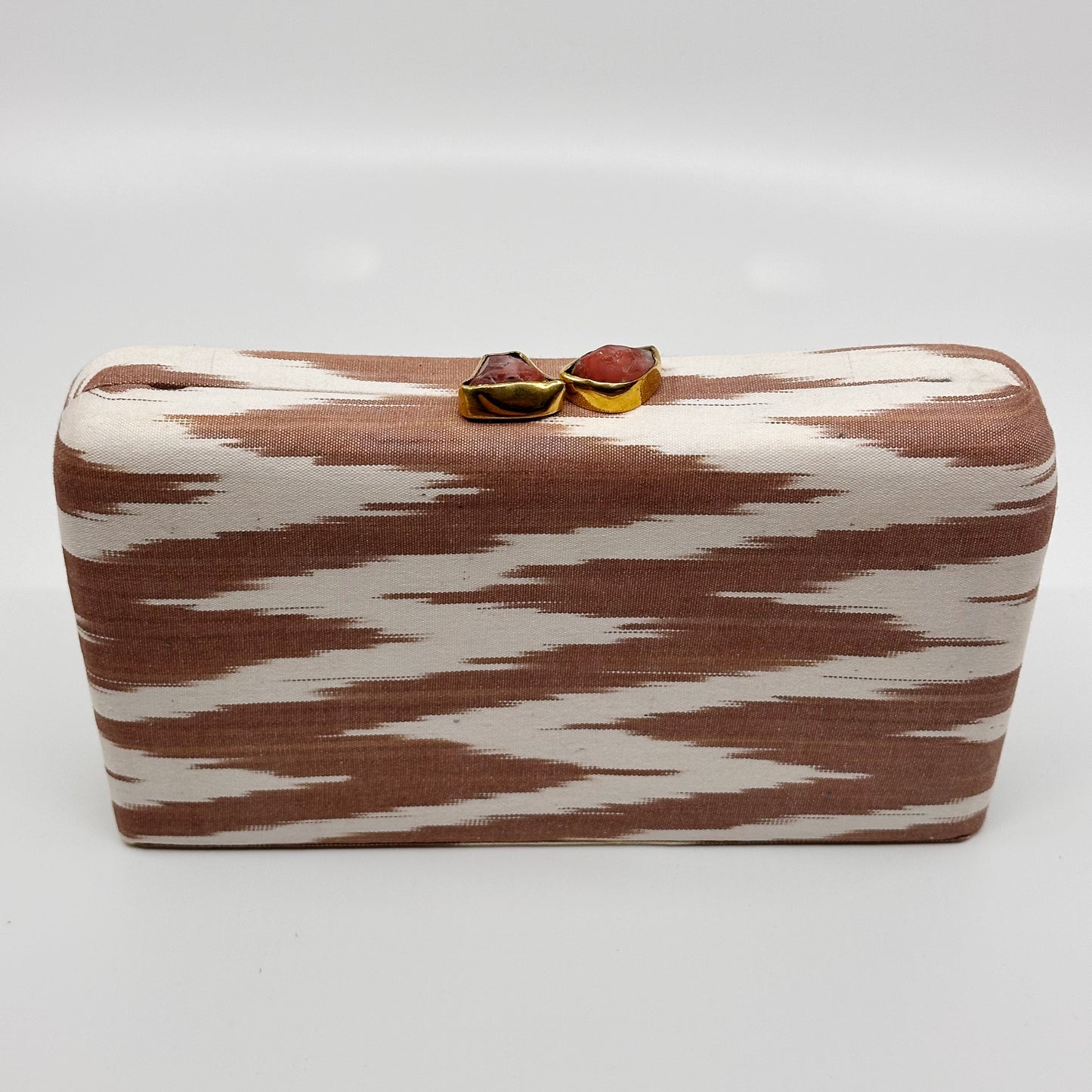 Lovingly stretched over handmade clutches by skilled Filipino artisans, the Siquijor features two exquisite stone closures that complement the rich hues of the ikat, creating a perfect blend of style and cultural heritage. Embrace the spirit of adventure and individuality with the Siquijor clutch—where every piece is a celebration of craftsmanship and a story waiting to be told.